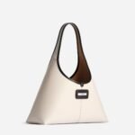 Versatile and minimally designed in a curved silhouette. Hobo is made from smooth Italian leather detailed with contrasting black leather trim. Sleek interior is lined in micro suede textile. The stud closure at the top keeps your belongings secure. It comes with a detachable pouch, which is perfect for securing smaller essentials. This medium sized version is large enough to hold all of your essentials, plus a book or tablet.