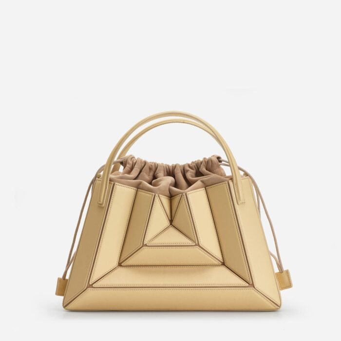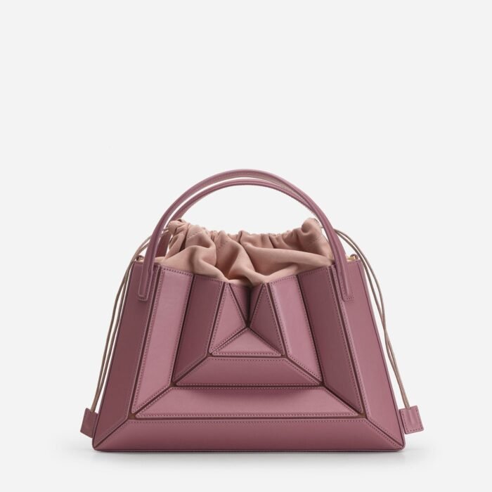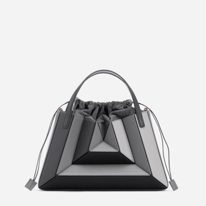 Its exterior design is a surrealist dream, reminiscent of a maze-like structure protruding outwards, with sharp, clean lines, and a 3D fa?ade. Opening the top handles reveals a suede drawstring top edge, securing your belongings on the go.